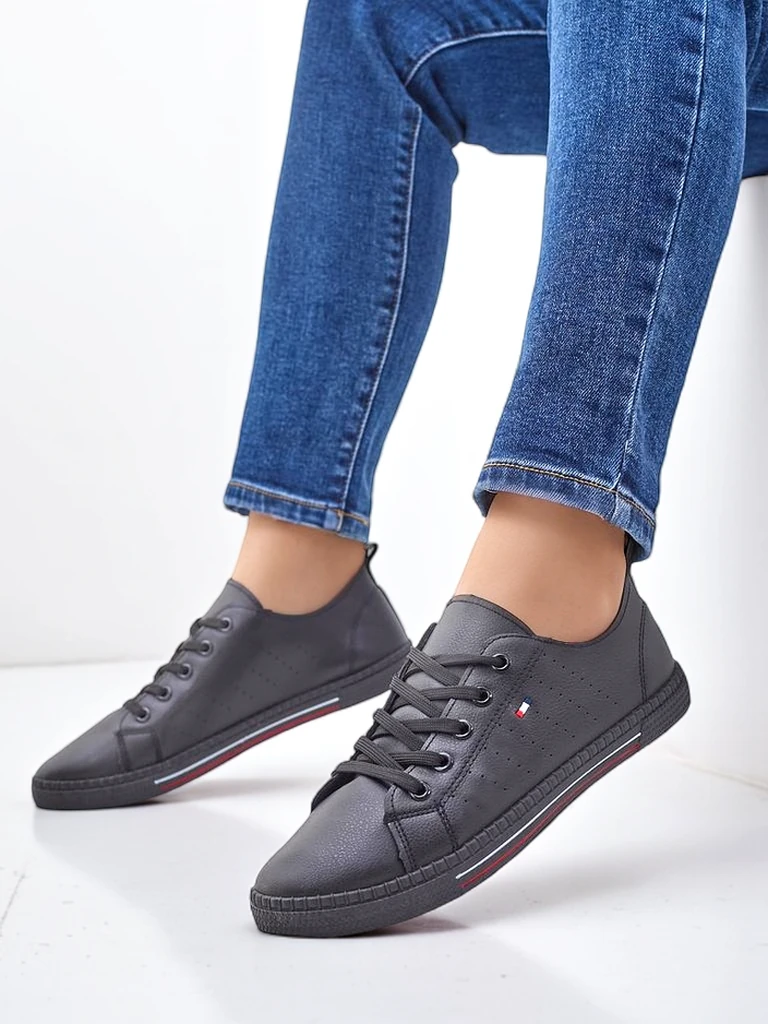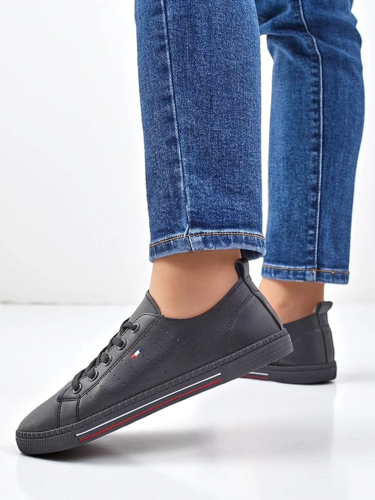 • Класичні кросівки з еко-шкіри, внутрішня частина облицьована тканиною. Дуже зручні, на шнурках. Взуття підходить до багатьох повсякденних стилів!