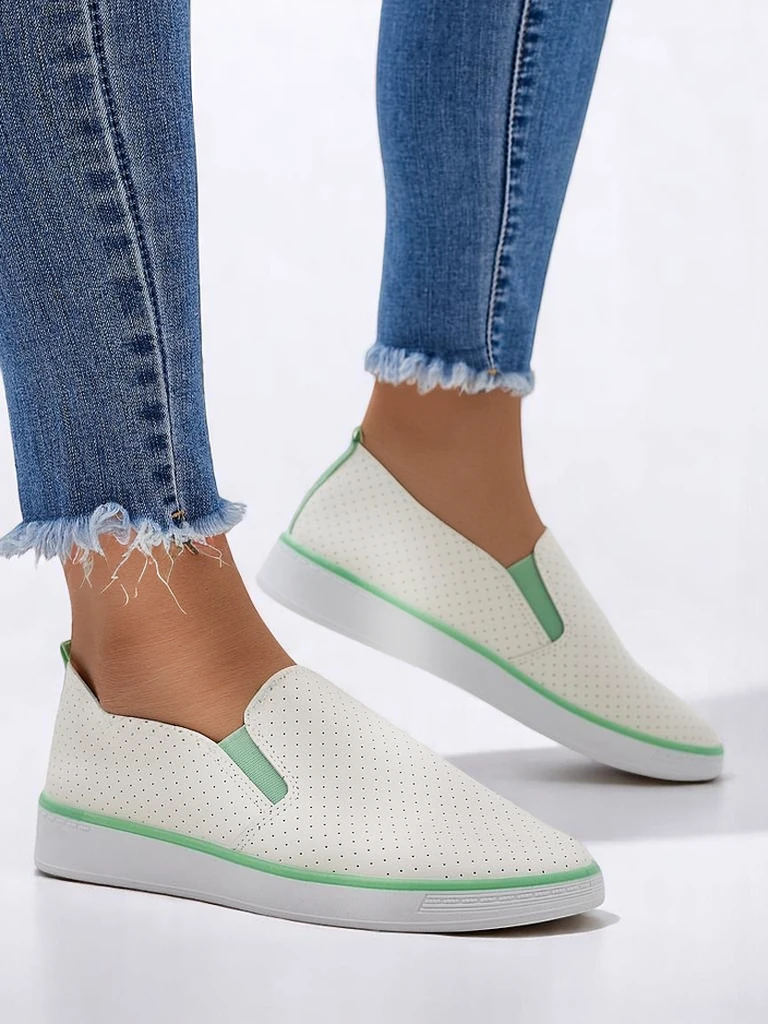- Перфоровані жіночі спортивні сліпони з синтетичної шкіри. Оброблені тканиною. Ідеальний вибір для щоденного носіння!