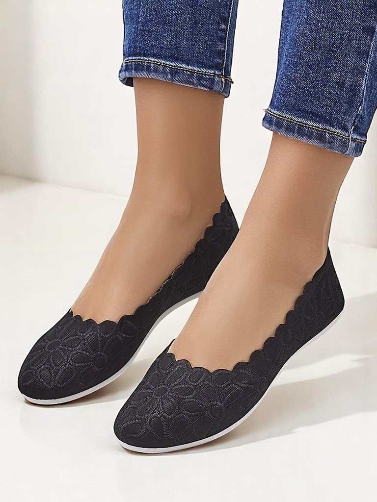 • Виняткові балетки з тканини з круглим носком. Верх оздоблений ніжною квітковою вишивкою. М'яка тканинна устілка забезпечує комфорт. Вони ідеально підходять для елегантних та модних образів!