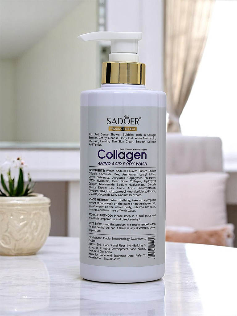 - Колагеновий гель для душу – делікатно очищує шкіру, зволожує та покращує її еластичність завдяки колагену. Робить шкіру гладкою, свіжою та приємно пахне.