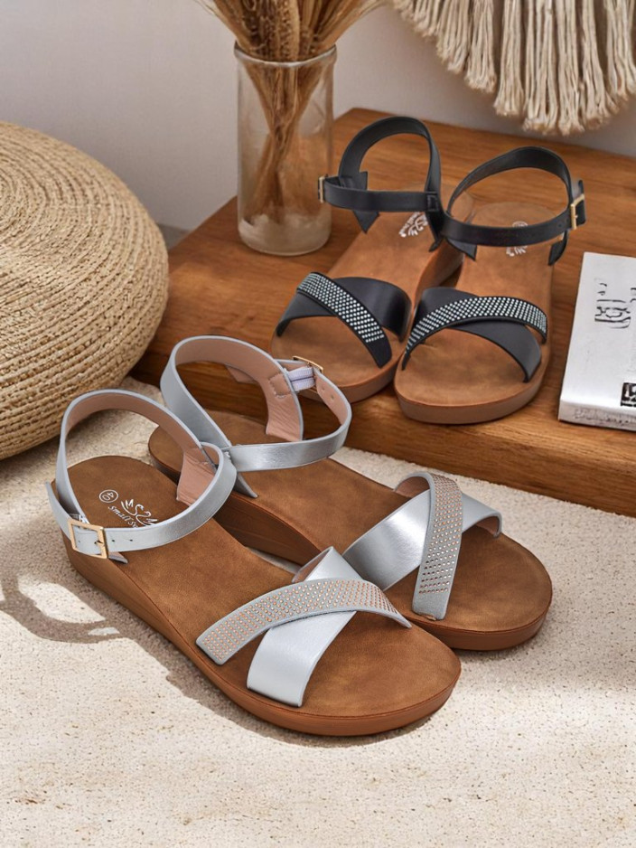 - Захоплюючі жіночі босоніжки на танкетці, прикрашені ніжними стразами, ідеально підкреслять літнє сяйво. Поєднання комфорту та розкішного вигляду – ідеально для будь-якої особливої події!