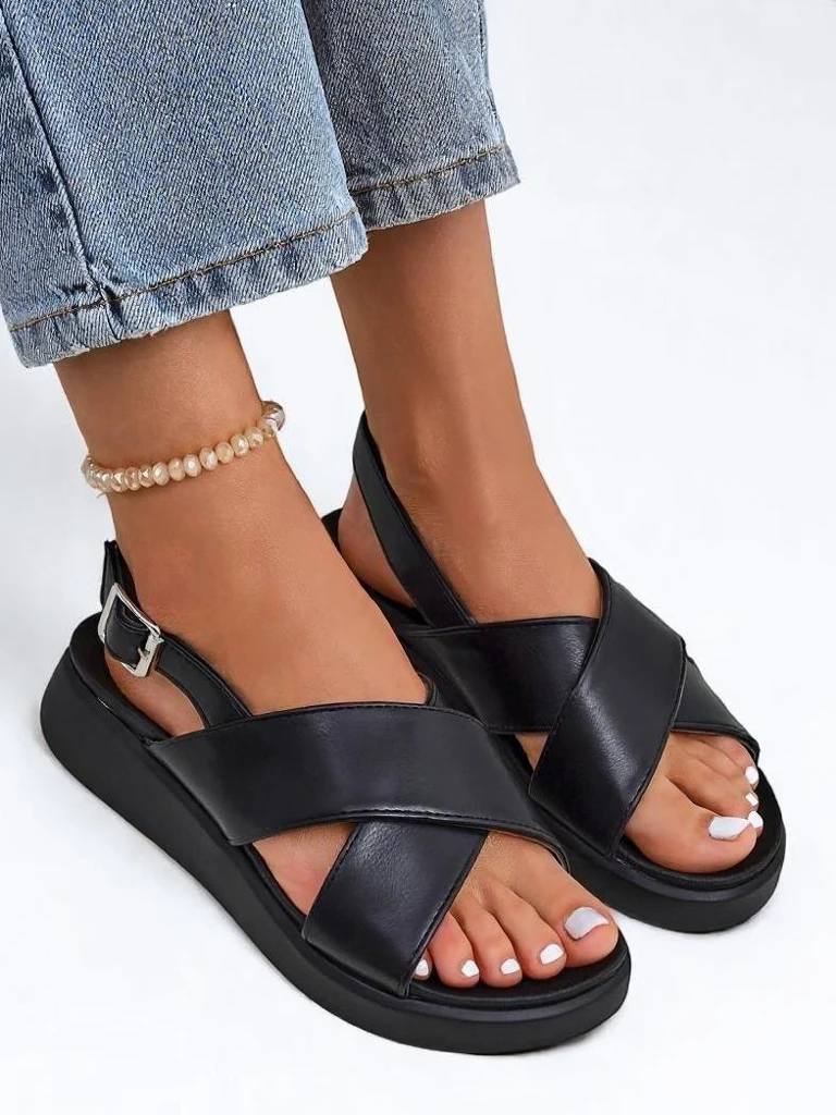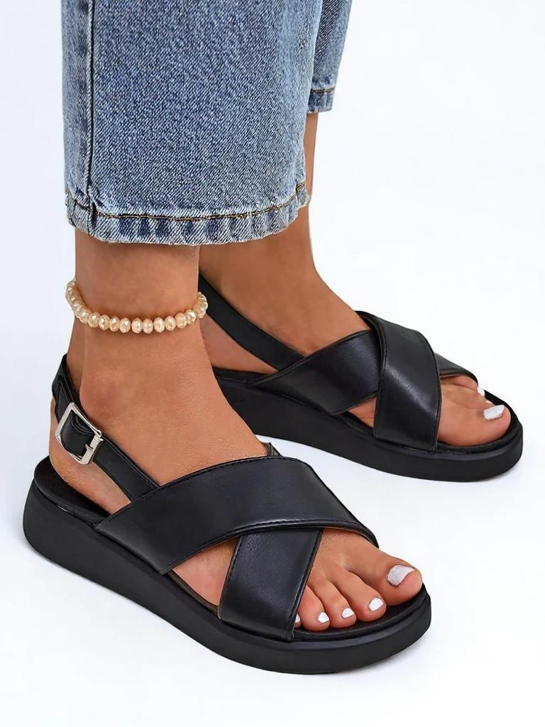 - Сандалі Riva Star з екошкіри на грубій підошві – це поєднання зручності та стилю. Застібаються на пряжку, ідеально тримають стопу – ідеальні для тривалих літніх прогулянок.