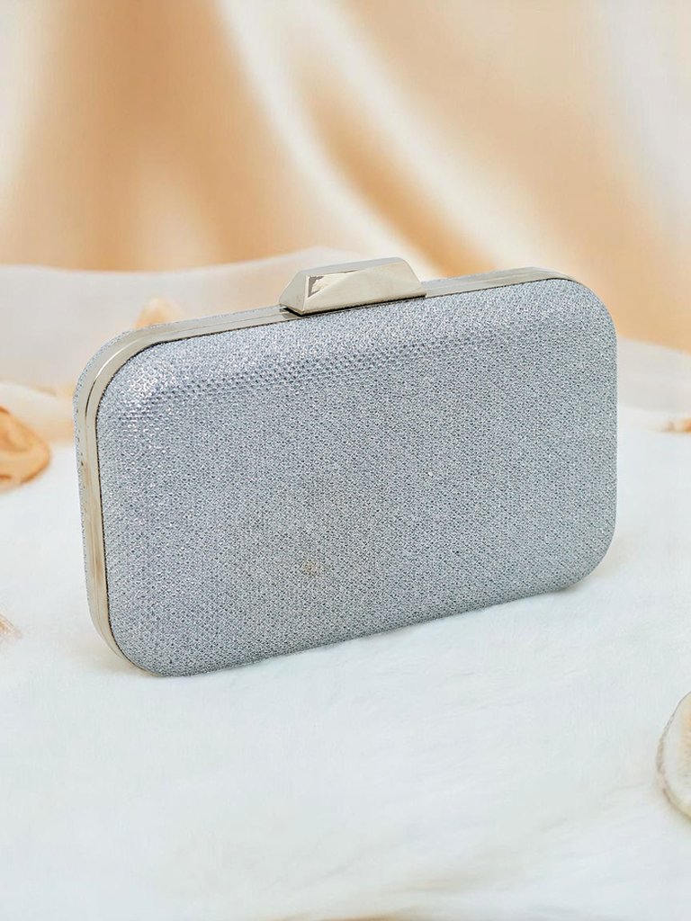 - Конвертна сумка з екошкіри, вкрита тканиною з мерехтливою ниткою та делікатним тисненням. Застібається на кнопку, має знімний ланцюжок — елегантність з ноткою сяяння.