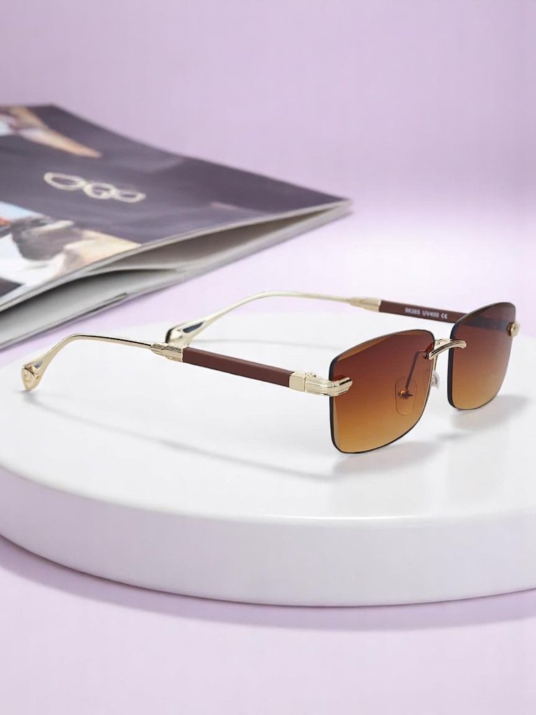 - Маленькі, вузькі окуляри з прямокутною формою та металевою оправою. Вінтажний стиль у сучасному виконанні – ідеальний вибір для прихильників сміливих ретро-аксесуарів.