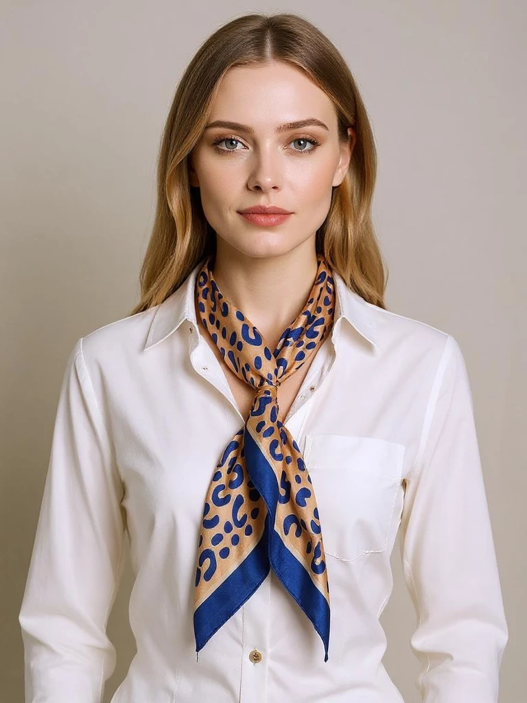 Жіноча хустка Apollonia – це вишуканий аксесуар, який ідеально поєднує останні тенденції зі зручністю щоденного використання. Виготовлена зі 100% високоякісного поліестеру, хустка характеризується приємною на дотик фактурою, м'якістю та ніжним блиском тканини. Процес виробництва використовує передові технології ткацтва, що забезпечують стійкість кольорів і стійкість до скочування та деформації. Хустка має сертифікат OEKO-TEX, що є гарантією безпеки для шкіри.Візерунок, що нагадує леопардовий принт у відтінках бежу з чорними та червоними акцентами, є реверансом у бік найсвіжіших світових тенденцій. Цей динамічний мотив робить кожен образ характерним. Хустка Apollonia чудово поєднується як з класичними, так і з повсякденними комплектами, додаючи легкості та трохи екстравагантності.Переваги вибору хустки Apollonia – це не тільки позачасовий дизайн, але й комфорт носіння протягом усього дня – легкий і дихаючий поліестер легко лягає на шиї та не викликає подразнень. Її розміри (69 см довжини, 66 см ширини) дозволяють використовувати багато способів стилізації: 1. Зав'яжіть як класичну хустку під шиєю до елегантної білої сорочки та піджака – ідеально для роботи або ділової зустрічі. 2. Оберніть навколо голови як пов'язку або зав'яжіть на волоссі – чудово підходить для повсякденних образів з джинсами та футболкою. 3. Пов'яжіть на ручці сумки або як прикрасу браслета – додасть цікаву деталь кожному образу.Щоб зберегти чудовий вигляд і довговічність хустки, рекомендується ручне прання в теплій воді з м'яким миючим засобом і сушіння на плоскій поверхні. Прасувати на низькій температурі з виворітного боку. Поліестер не вбирає запахи і швидко сохне, тому хустка ідеально підходить для поїздок і щоденного використання.Актуальні модні тваринні візерунки та нейтральні кольори, такі як беж і чорний, підкреслюють універсальність продукту і дозволяють поєднувати його з різними випадками та стилями. Хустка Apollonia – це вибір як для шанувальниць класики, так і для сміливіших трендів!