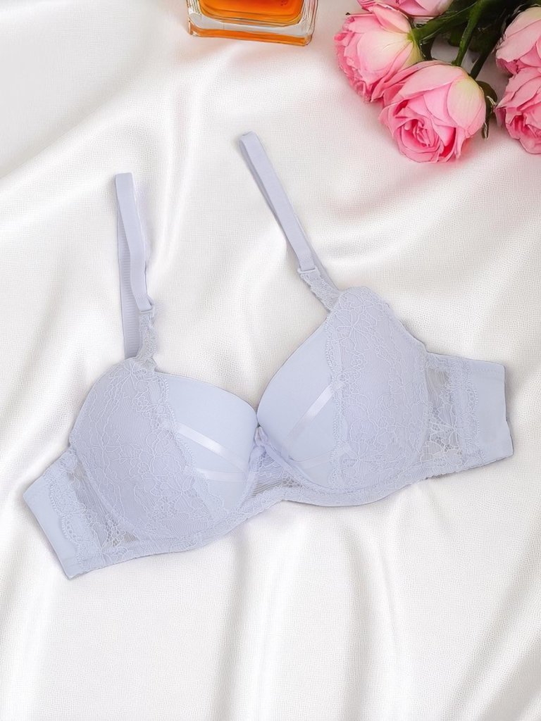 - Відмінний бюстгальтер з поролоновою чашкою. Модель застібається на спині, має регульовані, знімні бретелі, а також додатково прикрашена декоративним візерунком між чашками.