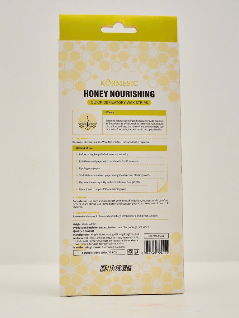 - Воскові смужки для депіляції тіла з медом – 12 штук. Ефективно видаляють волосся, залишаючи шкіру гладкою до 6 тижнів. Делікатно впливають на шкіру, мають натуральний аромат меду.