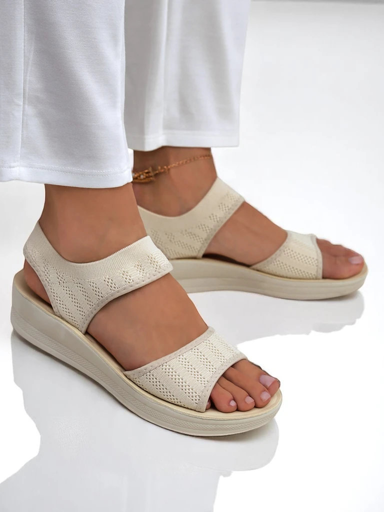 Сандалі Luminosa – це елегантні та надлегкі сандалі на платформі, які поєднують у собі непідвладну часу класику та сучасні технології виробництва. Верх виготовлений з високоякісної, повітропроникної поліестерової тканини, яка не тільки стійка до розтягування та деформацій, але й забезпечує неперевершену вентиляцію стоп навіть у найспекотніші дні. Платформна підошва з піноматеріалу EVA гарантує легкість і чудову амортизацію – ваші кроки будуть м’якими та впевненими протягом усього дня. Усі матеріали підібрані з турботою про ваше здоров’я та комфорт, відповідаючи стандартам сертифікатів OEKO-TEX®. Сандалі не містять шкідливих речовин і безпечні навіть для чутливої шкіри. Дизайн вирізняється мінімалістичним стилем і широким ремінцем на липучці, який дозволяє легко пристосувати взуття до форми стопи. Підкладка виготовлена з м’якого, гіпоалергенного синтетичного матеріалу, ніжного на дотик, який запобігає натиранню. Найважливіші переваги сандалій Luminosa – це легкість, повітропроникність і надзвичайно легкий догляд. Вони створюють неповторне відчуття свіжості в спекотні дні, а анатомічна форма підошви підтримує комфорт під час тривалих прогулянок. Стилізаційні ідеї: 1. Повсякденний вигляд: поєднуйте сандалі з білими лляними штанами та пастельним топом – ідеальний вибір для прогулянки містом або шопінгу. 2. Літня елегантність: поєднайте сандалі з легкою, повітряною сукнею міді та великою сумкою-шопером для зустрічі в кафе. 3. Спортивний стиль: носіть з короткими шортами та футболкою оверсайз – стилізація для відпочинку або активного дня на свіжому повітрі. Інструкція з догляду: сандалі слід чистити обережно вологою тканиною з додаванням м’якого мила, уникати прання в пральній машині. Сушити подалі від джерел тепла, щоб зберегти еластичність матеріалу. Зберігати в сухому місці, бажано в оригінальній коробці. Тенденції: світла гама бежевих і білих кольорів і ажурна фактура зараз є дуже модним елементом літнього взуття. Платформа забезпечує додатковий комфорт і ідеально вписується в міський, легкий повсякденний стиль.