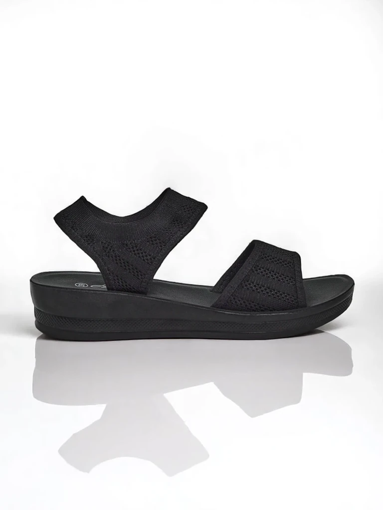 • Жіночі сандалі на товстій підошві, сліпони, зі зручною устілкою з екошкіри. Еластичні тканинні ремінці адаптуються до стопи, а гумка на щиколотці забезпечує стабільність і комфорт при носінні. Ідеальні на літо – легкі, практичні та стильні.