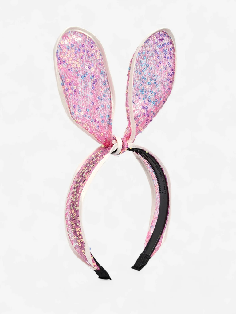 • Казкова дитяча пов'язка на голову з вушками кролика, вкритими блискітками. Легка, еластична та блискуча – ідеальна для вечірок, розваг та повсякденних образів з ефектом wow.