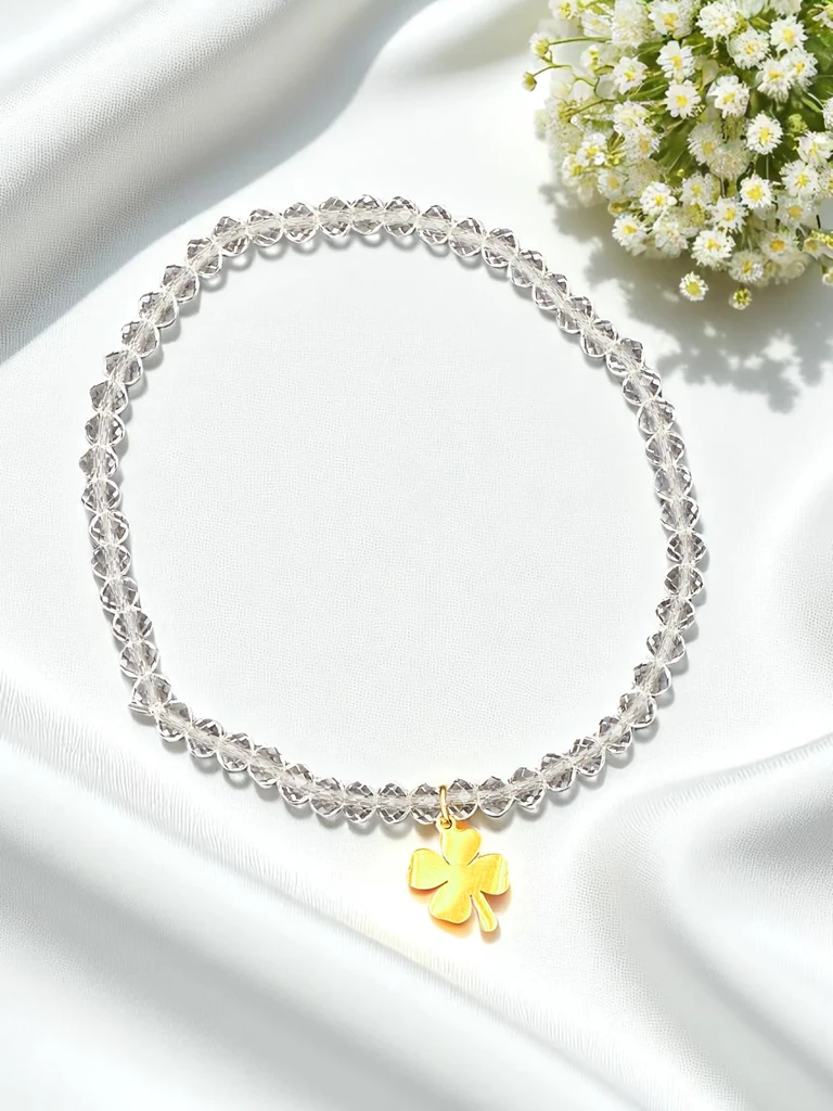 - Браслет з намистинами та підвіскою-конюшиною є стильним талісманом на удачу. Ніжний та елегантний, він символізує достаток, надію і позитивну енергію. Ідеально підходить для щоденного носіння як ненав'язливий аксесуар з унікальним посланням.