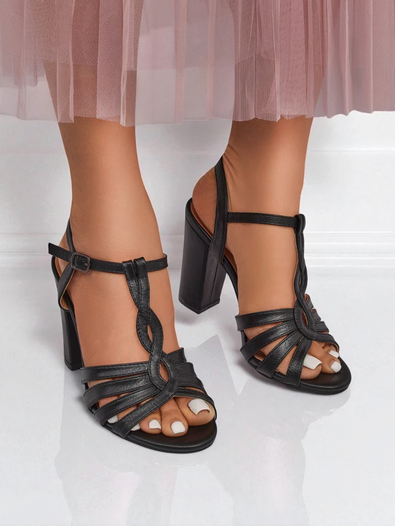 - Жіночі босоніжки на високому блочному каблуці з екошкіри з декоративними плетеними ремінцями та застібкою на пряжку. Стильні та зручні – ідеальні для літніх прогулянок, вечірок та елегантних заходів.