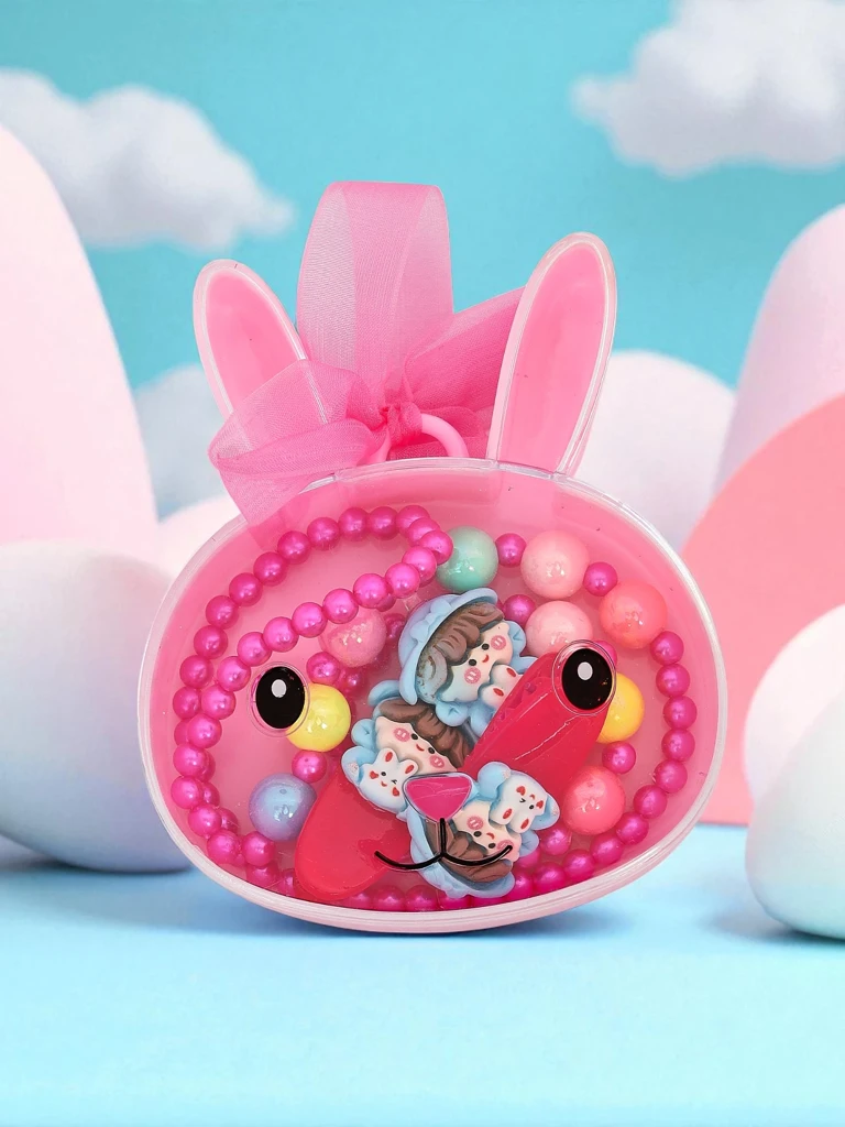 - Набір дитячих прикрас Bambina Dolce – чарівна сумочка-кролик, намистини, кліпси, ідеальний подарунок для дівчинки.