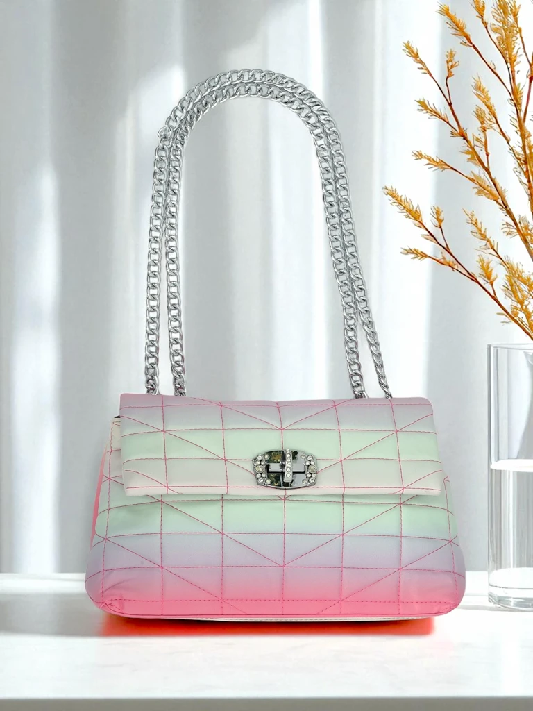 • Вишукана сумка-конверт з екошкіри з ефектом омбре. Закривається на блискавку та кнопку. Металевий ланцюжок замість ремінця додає шарму. 1 відділення, ідеально підходить для найнеобхіднішого для вечірнього виходу чи особливої нагоди.