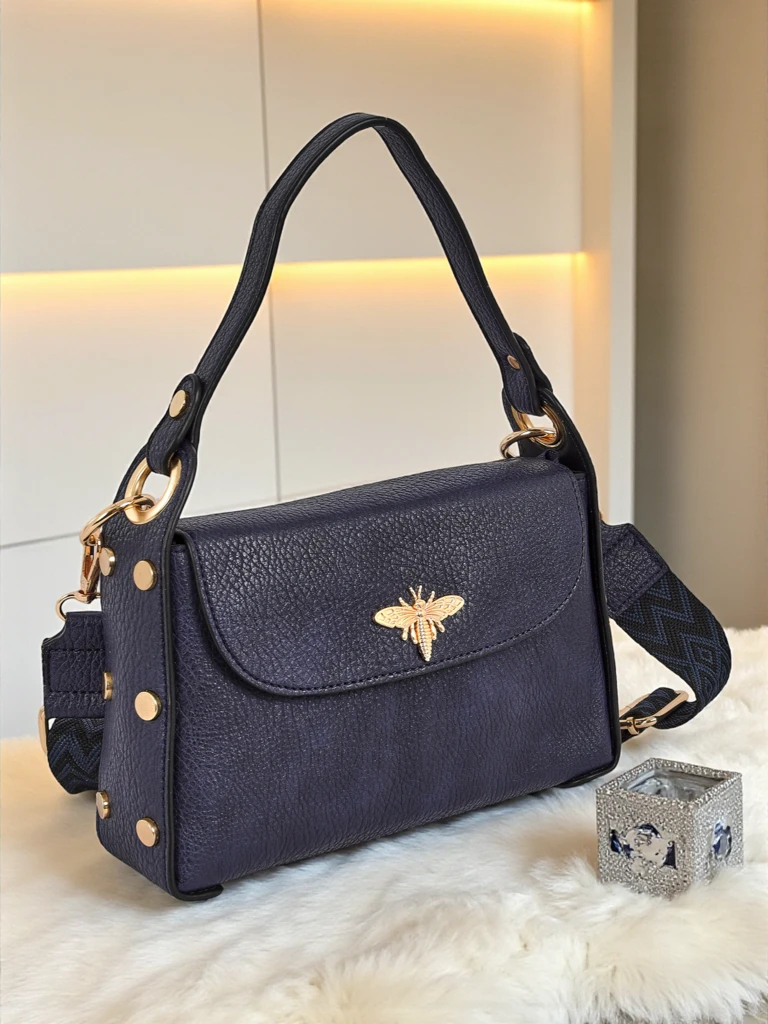 Жіноча Сумка Melia Cielo – Темно-синя Екошкіра з Мотивом Бджоли