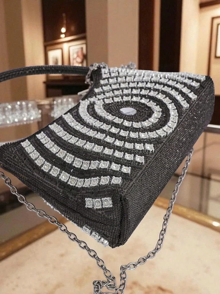 - Елегантний клатч з блискучими цирконами, 1 відділення, закривається на замок. Стильні ручки та декоративний ланцюжок додають шику. Ідеально підходить для особливих випадків – засліплюйте з класом!