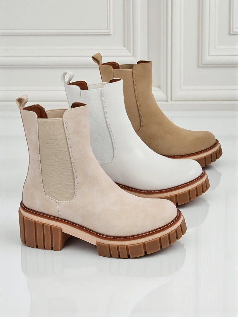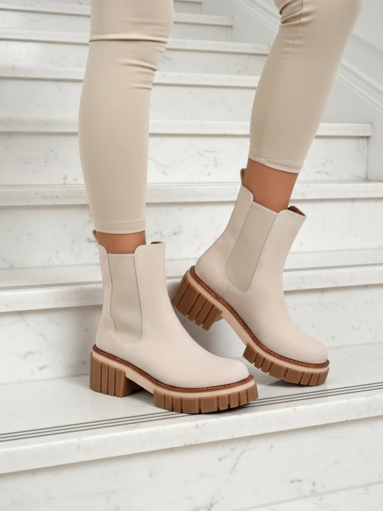 В даний час масивні підошви та виразні стовпчики є одним з найважливіших осінніх трендів, а класичний бежевий колір робить ці ботки універсальною пропозицією для кожної жінки, яка цінує комфорт, стиль та актуальні модні тенденції.