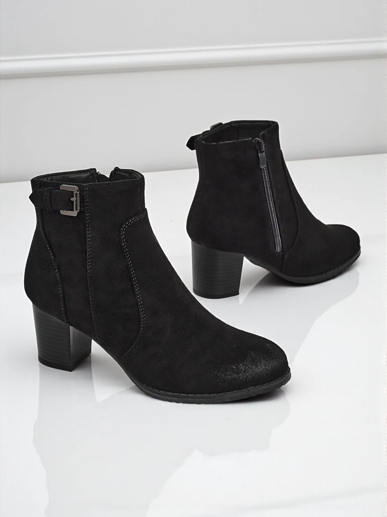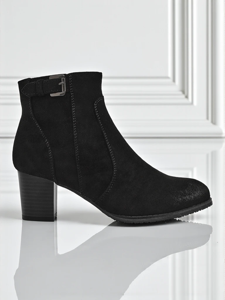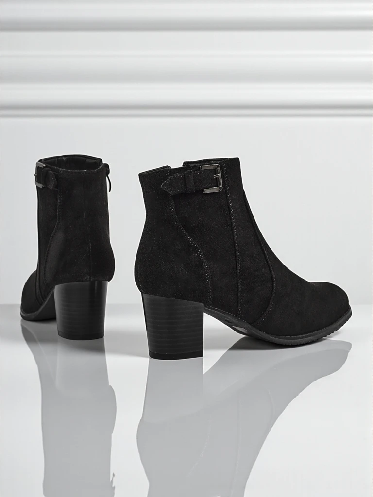 • Чудові жіночі ботильйони на підборах, виготовлені з еко замші. Внутрішня частина виконана з ніжного хутра. Модель застібається на блискавку. Мають декоративні пряжки. Ідеально підходять для осінніх образів!