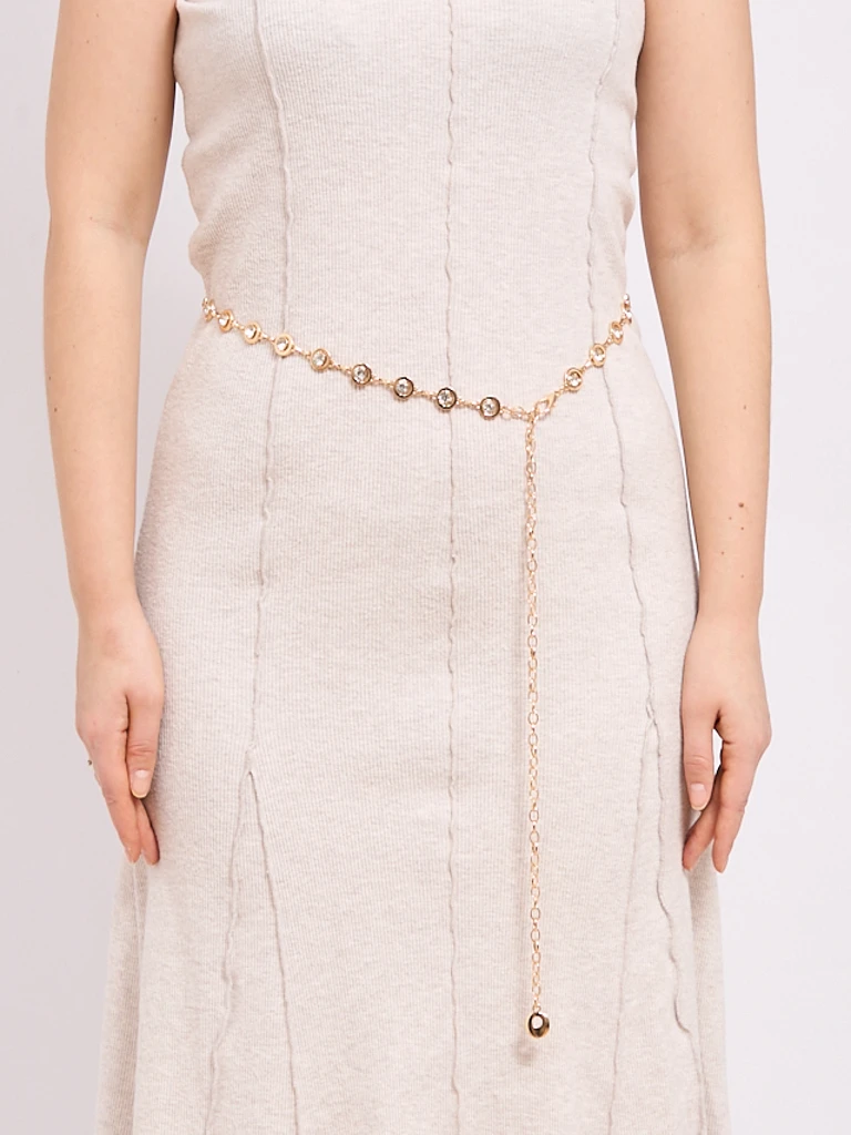 Aurelia Bella Donna – жіночий металевий ремінь з кристалами, золотий 115 см