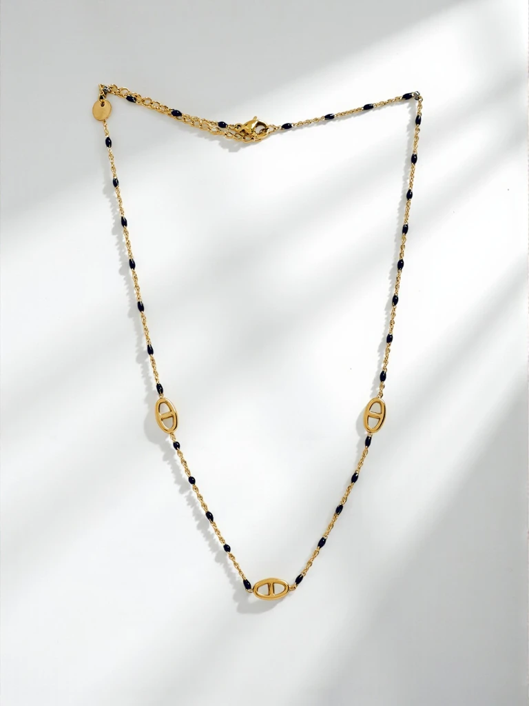 - Елегантний намисто Aurelia Nero – позолочений, з чорними намистинами, модний акцент кожної стилізації.