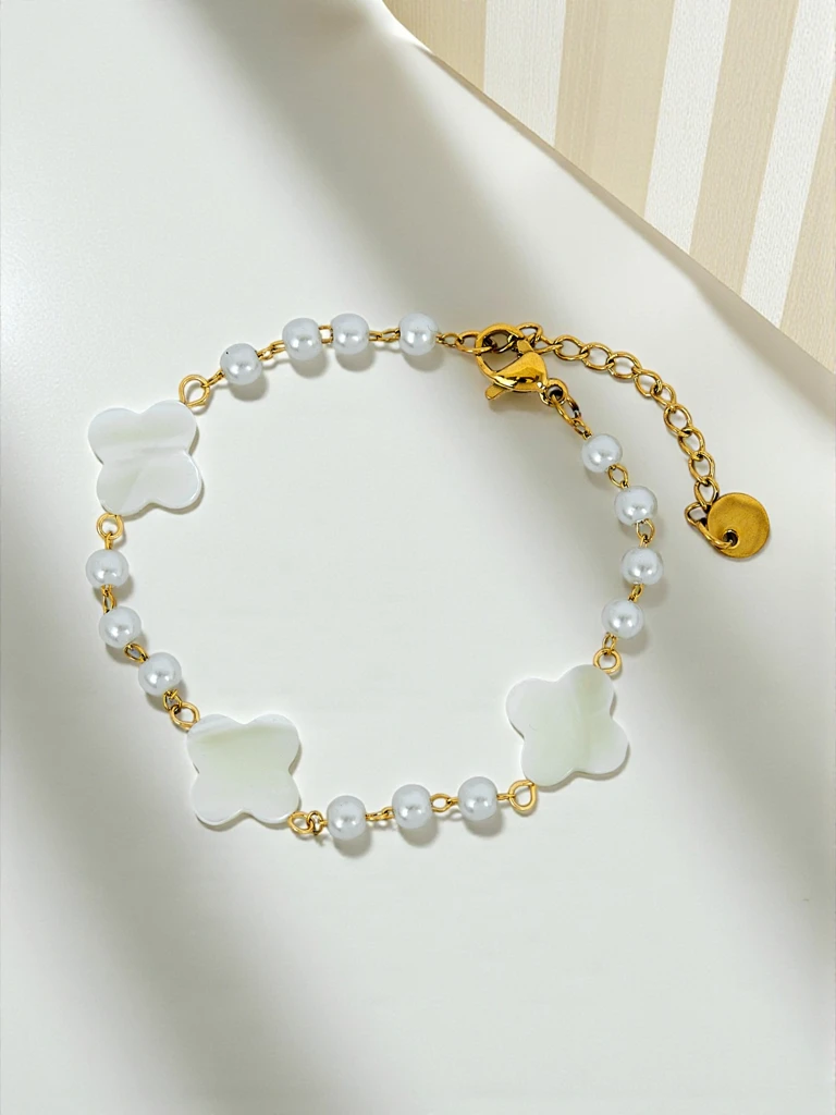 Браслет Aurelia Bianca з квітами у відтінку білої перлини, позолочений
