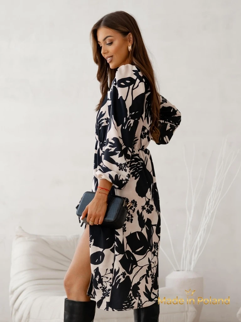 Відкрийте для себе унікальну сукню Melania Botanica – поєднання непідвладної часу елегантності та останніх модних тенденцій. Виготовлена з високоякісної тканини, що складається з 65% поліестеру та 35% віскози, що гарантує не тільки довговічність, але й комфорт носіння. Легка, дихаюча суміш матеріалів розроблена з урахуванням зручності, залишаючись м'якою на дотик і приємною для шкіри. У процесі виробництва використано сучасні техніки цифрового друку, які забезпечують виразний і стійкий ботанічний візерунок у відтінках коричневого, що є must-have цієї осені. Сукня має довжину міді, що сягає середини литки, що надає силуету гармонії та витонченості. Довгий рукав з делікатним збиранням підкреслює елегантний характер, а декольте з практичною застібкою на липучці робить її одягання швидким і зручним. Талія акцентована легкою перев'язкою, яка підкреслює жіночу фігуру та надає стилізації легкості. Особливості та переваги: - Винятковий комфорт завдяки повітропроникній тканині з віскозою. - Міцність і легкість у догляді (поліестер не мнеться і не втрачає форму). - Універсальний, стильний ботанічний візерунок, ідеальний на кожен день і для особливих виходів. - Витончений розріз, що додає сукні легкості та жіночності. Стилізації та пропозиції: 1. На кожен день: Поєднайте з козаками та капелюхом, створюючи ультрамодний повсякденний образ, ідеальний для роботи чи зустрічей. 2. На елегантний вихід: Підберіть класичні шпильки та золоті прикраси, щоб підкреслити візерунок і неповторний фасон сукні. 3. Вікендний релакс: Носіть з білими кросівками та джинсовою курткою, підкреслюючи вільний характер стилізації. Догляд: Сукню найкраще прати при температурі до 30°C, на делікатному режимі – завдяки цьому кольори та візерунки залишаться виразними. Рекомендується сушити на плоскій поверхні та прасувати при низькій температурі з виворітного боку. Сукня не потребує особливого догляду – її легко підтримувати в чистоті. Тренди: Ботанічні мотиви та натуральні кольори зараз надзвичайно модні – вони вписуються в еко-тренд і мінімалізм, що панує на подіумах. Довжина міді та вільніша форма, що підкреслює талію, ідеально підійдуть для різних випадків, гарантуючи стиль і зручність протягом усього дня.