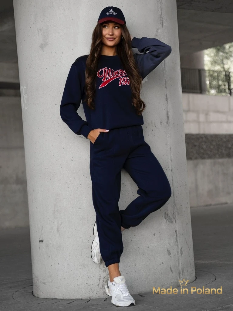 - Жіночий спортивний костюм, виготовлений з приємного бавовняного матеріалу. Толстовка з декоративними написами. Довгі штани з гумкою на талії та штанинах, з 2 кишенями. Відчуйте стиль у цьому чудовому комплекті!
