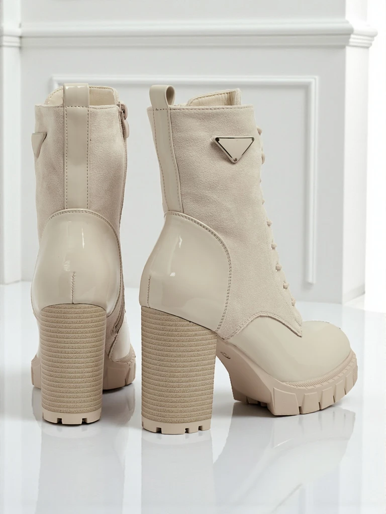 • Зручні ботильйони на підборах-стовпчику, виготовлені з еко замші та екологічної шкіри. Модель на шнурівці та з застібкою-блискавкою. Ідеальний вибір на осінь!