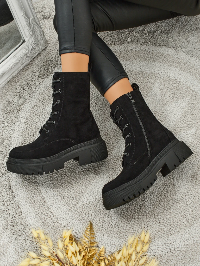 - Високі жіночі ботильйони-воркери з еко-замші, на шнурівці та з застібкою-блискавкою. Модель на вищій підошві, всередині делікатне хутро. Ідеальний вибір на холодну пору!