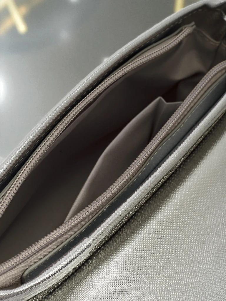 - Елегантний клатч з блискучими цирконами, 1 відділення, закривається на замок. Стильні ручки та декоративний ланцюжок додають шику. Ідеально підходить для особливих випадків – сяйте з класом!