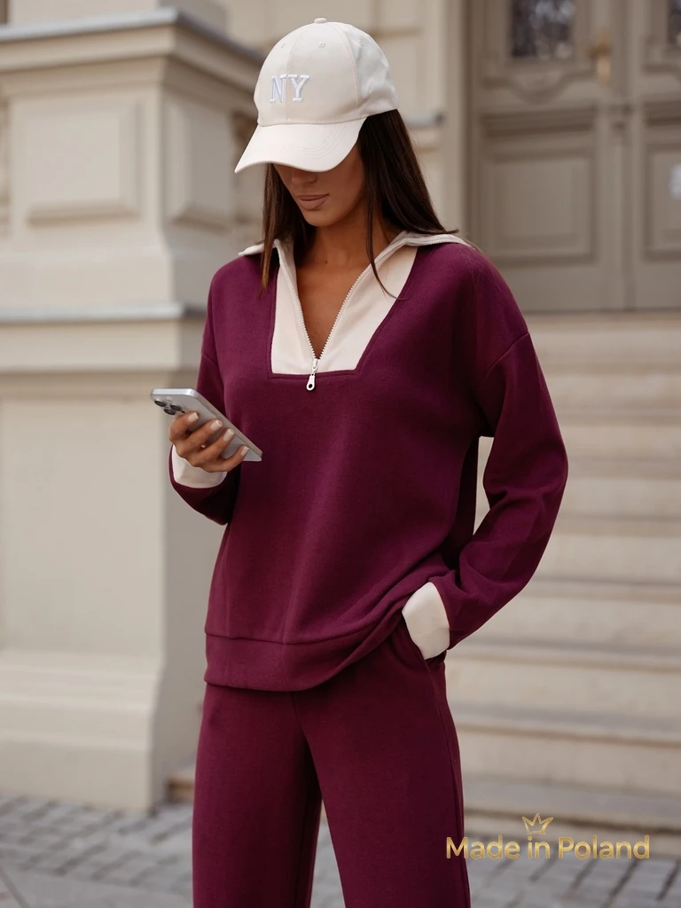 - Жіночий трикотажний костюм, виготовлений з приємного бавовняного матеріалу. Кофта із застібкою-блискавкою на декольте. Довгі штани з гумкою на талії та 2 кишенями. Відчуйте стиль у цьому чудовому комплекті!