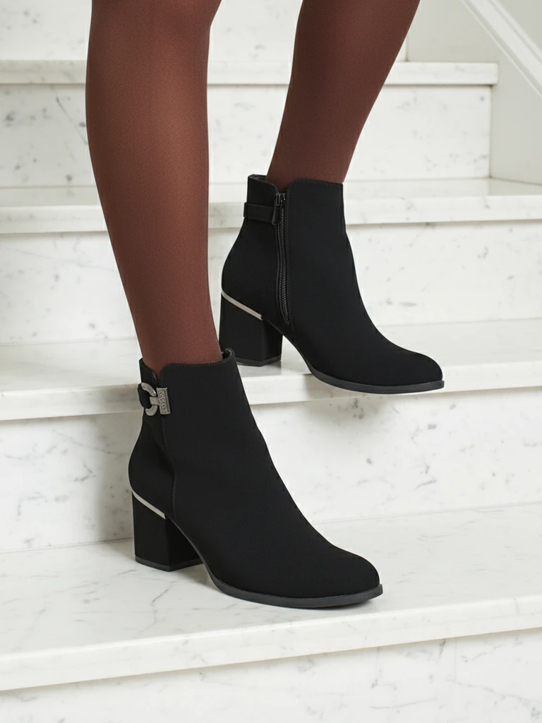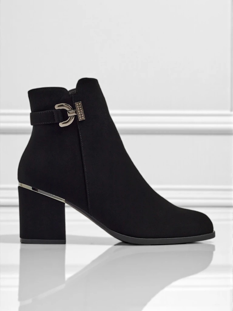 • Зручні ботильйони на підборах-стовпчику, виготовлені з еко шкіри матової. Модель застібається на блискавку. Ідеальний вибір на осінь!