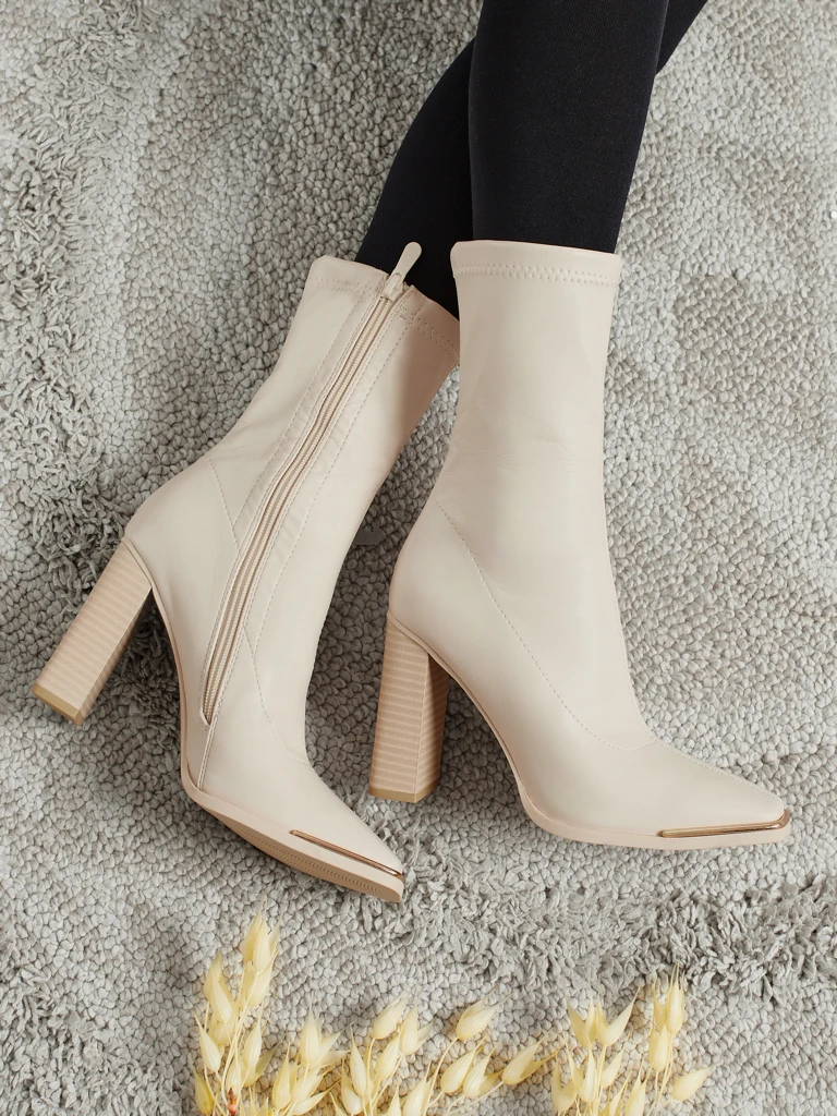 Відкрийте для себе есенцію міської елегантності з ботильйонами Aura – ідеальним поєднанням сучасного дизайну та неперевершеного комфорту. Ці бежеві ботильйони на підборах – це квінтесенція стилю, яка чудово вписується в останні тенденції, водночас пропонуючи позачасову класику. Матеріали та технологія виробництва: Ботильйони Aura виготовлені з високоякісної еластичної екологічної шкіри, яка ідеально адаптується до форми стопи, як друга шкіра. Завдяки цьому халява типу «sock boot» забезпечує не тільки естетичний вигляд, але й винятковий комфорт носіння протягом усього дня. Цей матеріал ретельно відібраний з точки зору довговічності та стійкості до щоденного використання. Внутрішня частина взуття вистелена м’якою, дихаючою тканиною, яка забезпечує належну циркуляцію повітря. Стійкий каблук типу стовпчик, висотою приблизно 8-9 см, виготовлений з міцного матеріалу, що імітує натуральне дерево, що додає їм шляхетності та забезпечує впевненість кроку. Підошва з антиковзної гуми гарантує безпеку на різних поверхнях. Характерний, злегка квадратний носок взуття був делікатно прикрашений елегантною золотою бляшкою, яка є вишуканим акцентом і підкреслює розкішний характер взуття. Кожна пара є результатом точної майстерності, з увагою до найдрібніших деталей. Переваги та відчуття від використання: Носіння ботильйонів Aura – це чисте задоволення. Еластична халява робить взування та знімання надзвичайно легким, а їх прилягання до ноги ідеальне. Стійкий стовпчик забезпечує комфорт навіть під час тривалої ходьби, усуваючи відчуття втоми. Елегантний гострий носок оптично подовжує ноги, додаючи силуету стрункості та грації. Бежевий колір надзвичайно універсальний і легко поєднується з різноманітними палітрами кольорів, що робить ці ботильйони незамінним елементом гардеробу. Почувайтеся впевнено та стильно в будь-якій ситуації, знаючи, що ваші ноги оповиті комфортом та елегантністю. Стилістичні поради: 1. Ділова елегантність: поєднайте ботильйони Aura з приталеними брюками-сигаретками нейтрального кольору, шовковою блузкою та класичним піджаком. Це ідеальний набір для офісу, який підкреслить ваш професіоналізм і відчуття стилю. 2. Casual Chic: Створіть модний образ, поєднавши ботильйони з джинсами скінні або mom jeans, вільним светром оверсайз і довгим пальто. Додайте велику сумку-шопер, щоб отримати невимушений, але елегантний образ на кожен день. 3. Вечірній вихід: ботильйони Aura чудово доповнять сукню міді приталеного крою або плісировану спідницю з елегантним топом. Додайте делікатні прикраси та маленький клатч, щоб створити вишуканий образ для побачення чи вечірньої зустрічі. Догляд та чищення: Щоб ботильйони Aura служили вам довгий час, не забувайте про належний догляд. Регулярно чистіть їх вологою, м’якою тканиною, щоб видалити пил і бруд. Уникайте надмірного змочування. Рекомендується використовувати спеціалізовані засоби для догляду за екологічною шкірою, які допоможуть зберегти еластичність матеріалу та його гарний вигляд. Після кожного використання, особливо в дощові дні, залиште взуття сушитися в провітрюваному місці, подалі від прямих джерел тепла. Використовуйте колодки, щоб запобігти деформації халяви та зберегти її ідеальну форму. Модні тенденції: Ботильйони-шкарпетки з еластичною халявою – одна з найгарячіших тенденцій 
