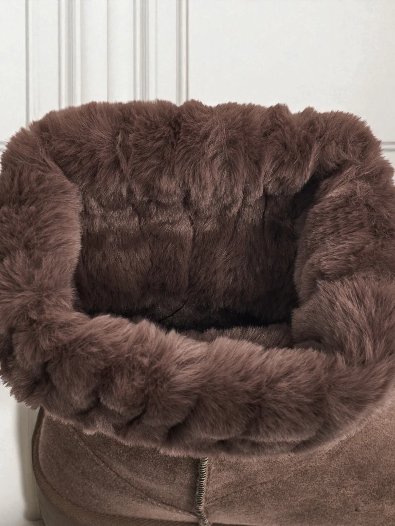 - Чудові жіночі зимові чоботи-снігоходи на товстій платформі. Верх виготовлений з еко-замші, утеплені хутром всередині. Ідеальна база на зиму!