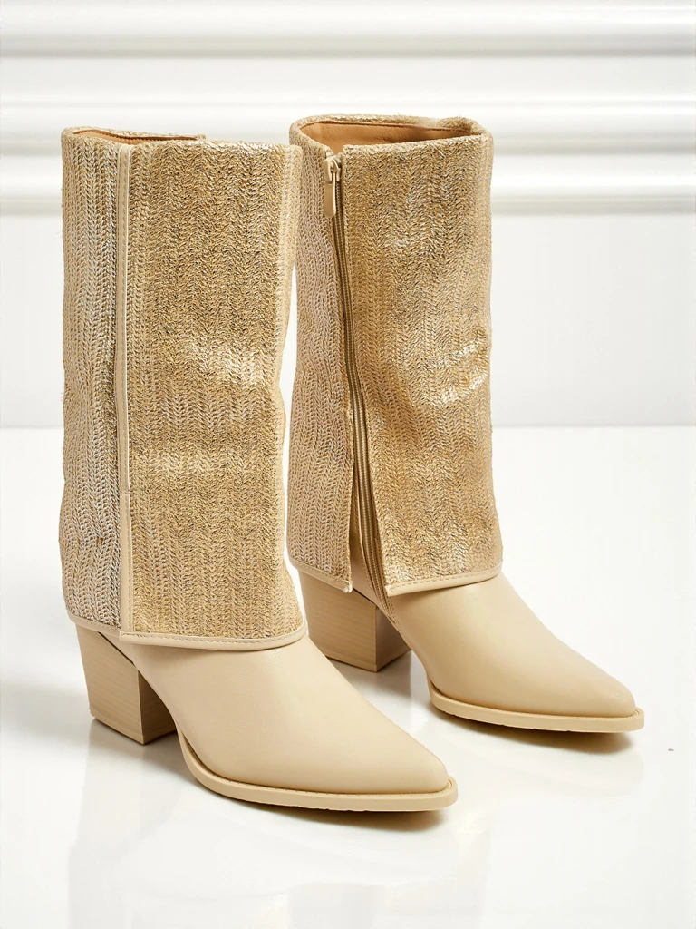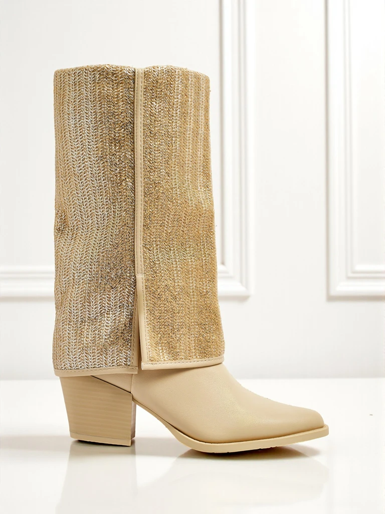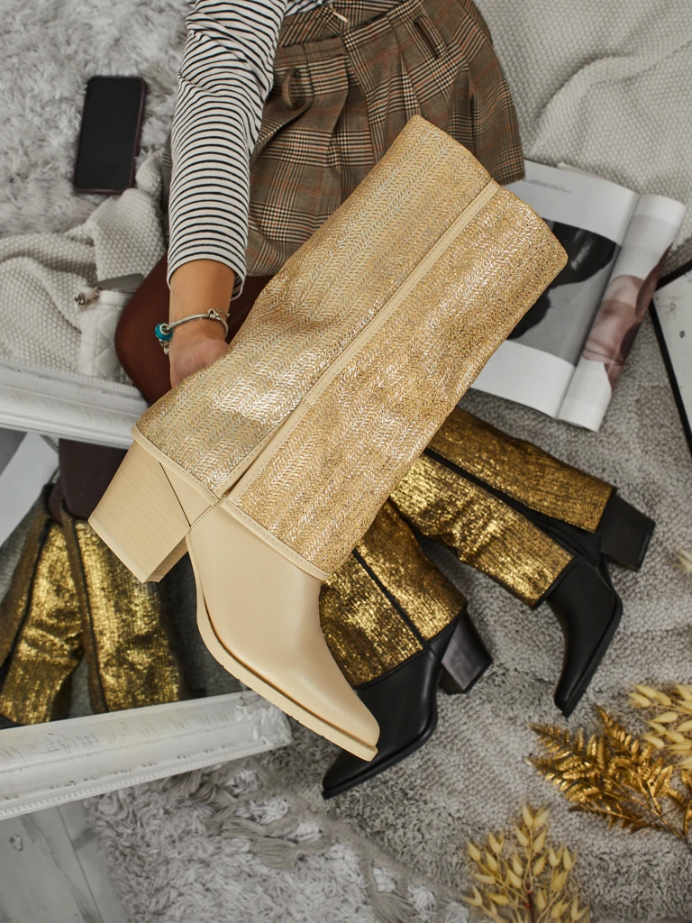 Жіночі ботильйони з екошкіри на підборах-стовпчику з декоративною халявою Virelia