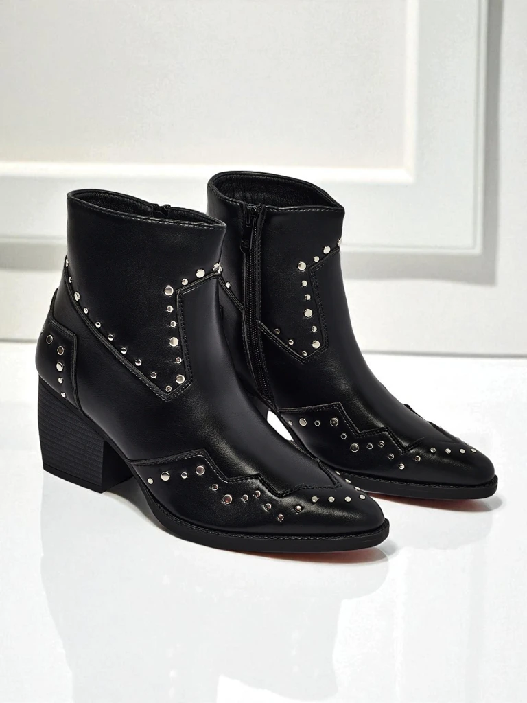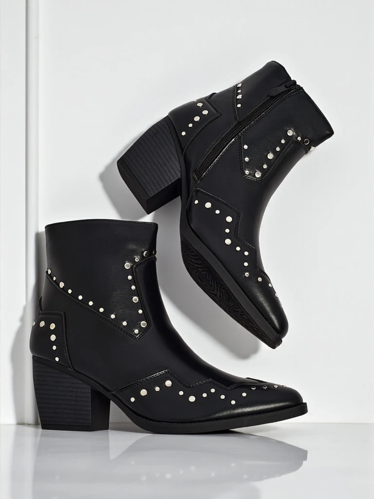 • Ботільйони в стилі ковбойок на підборах, виготовлені з екологічної шкіри. Устілка з екошкіри, взуття застібається на блискавку з декоративними джетами. Підходять до багатьох жіночих стилізацій!
