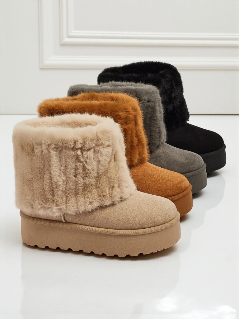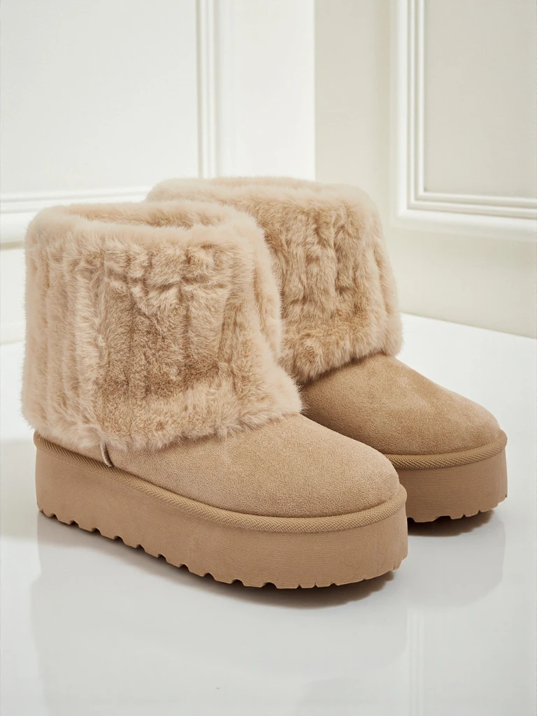 - Чудові жіночі зимові чоботи-снігоходи на товстій платформі. Верх виготовлений з еко-замші, утеплені хутром всередині. Ідеальна база на зиму!