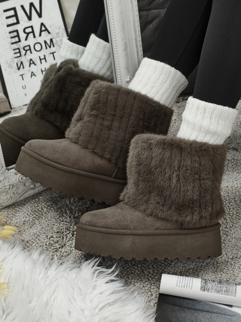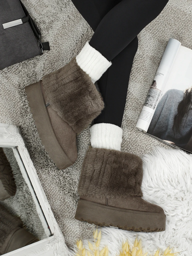 • Чудові жіночі зимові чоботи-снігоходи на товстій платформі. Верх виготовлений з еко-замші, утеплені хутром всередині. Ідеальна база на зиму!