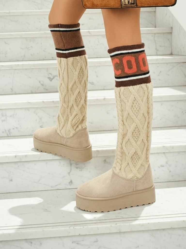 • Чудові жіночі зимові черевики-снігоходи на товстій підошві-платформі. Верх виготовлений з екологічної замшевої шкіри, утеплені хутром всередині. Додатково мають високий верх a'la тканинний носок. Ідеальна база на зиму!