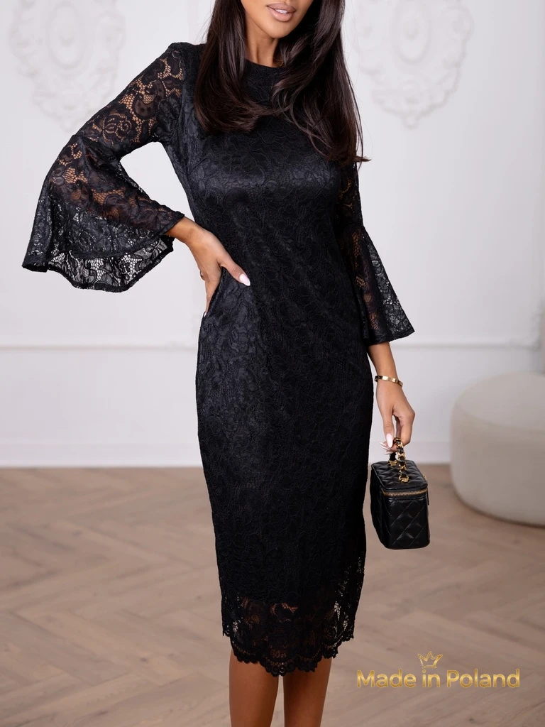 - Коронкова жіноча сукня міді. Модель з довгими, широкими рукавами, круглим вирізом та прямим кроєм. Must have у вашому гардеробі!
