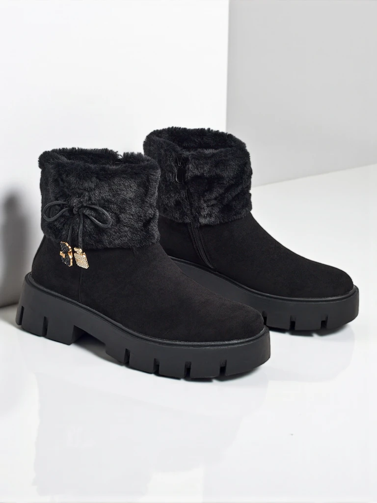 - Жіночі ботильйони на блискавці. Модель виготовлена з екологічної замшевої шкіри, на плоскій підошві. Має утеплення а-ля хутро. Прикрашені хутром та підвісками. Зручні та стильні, ідеальні на осінь!
