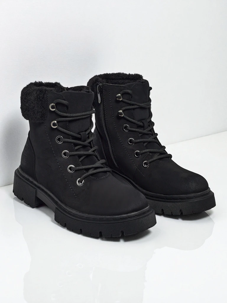 - Жіночі трекінгові черевики-трапери зі шнурованою халявою. Матеріал виготовлення - екологічна замшева шкіра. Усередині утеплені ніжним хутром. Ідеальні для зимової пори!