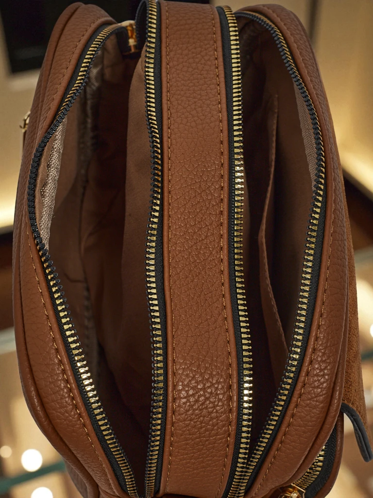 - Маленька сумочка, виготовлена з поєднання екошкіри та екозамші. 2 відділення, 3 кишеньки, замок та регульований ремінець. Стиль та функціональність у досконалому виконанні.