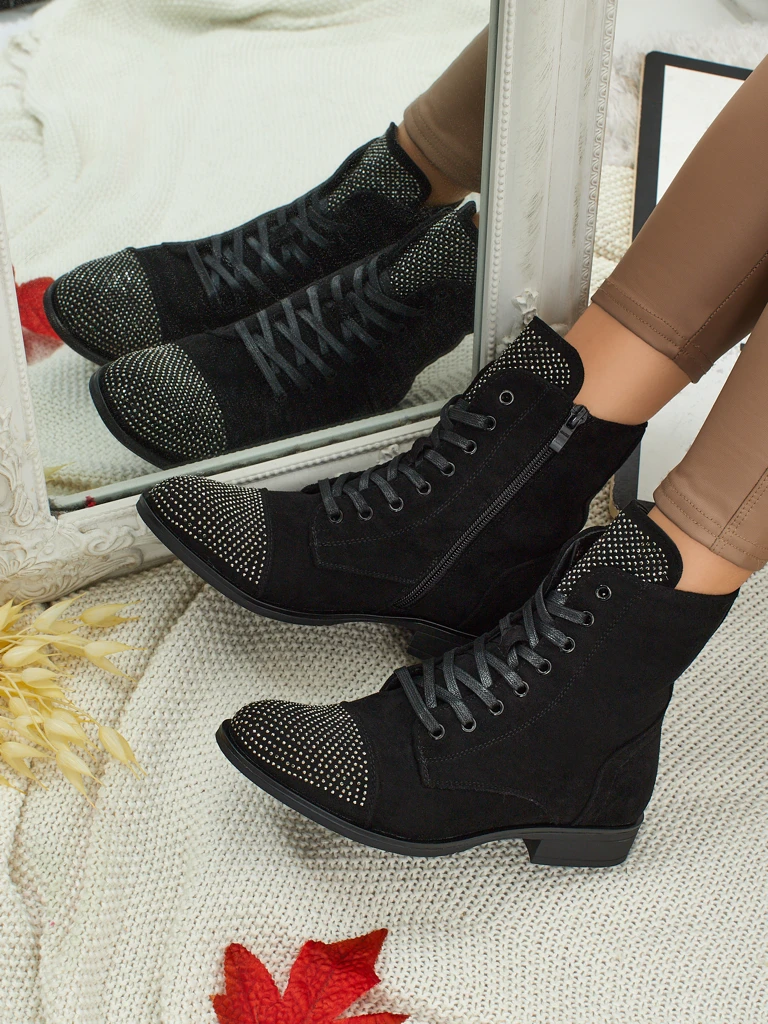 Еко замшеві жіночі ботфорти на шнурівці з цирконами Marvelli