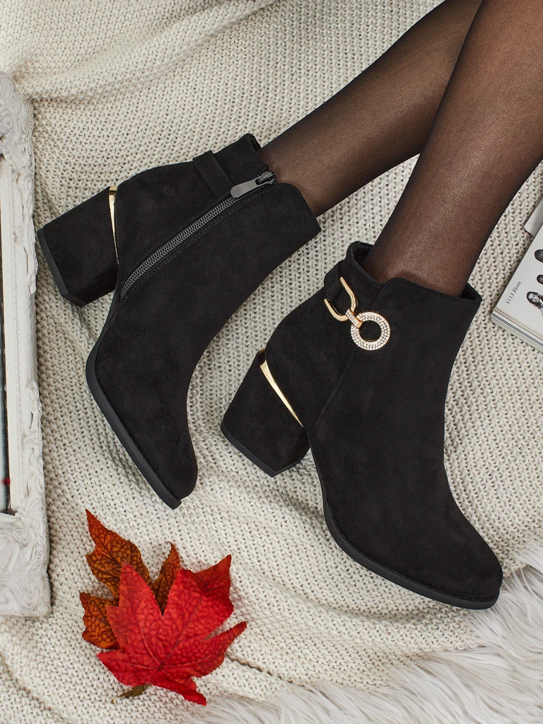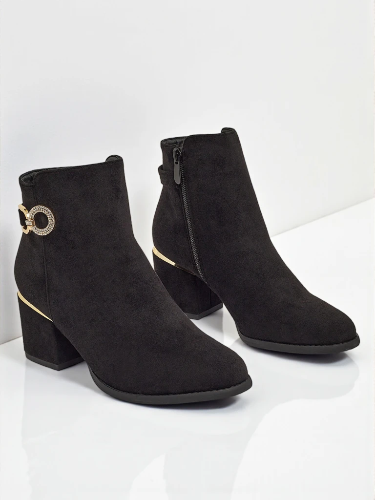 • Чудові ботильйони на підборах, виготовлені з еко замшевої шкіри. Модель застібається на блискавку. Модель делікатно утеплена хутром, має прикрасу збоку халяви. Ідеальний вибір на осінь!