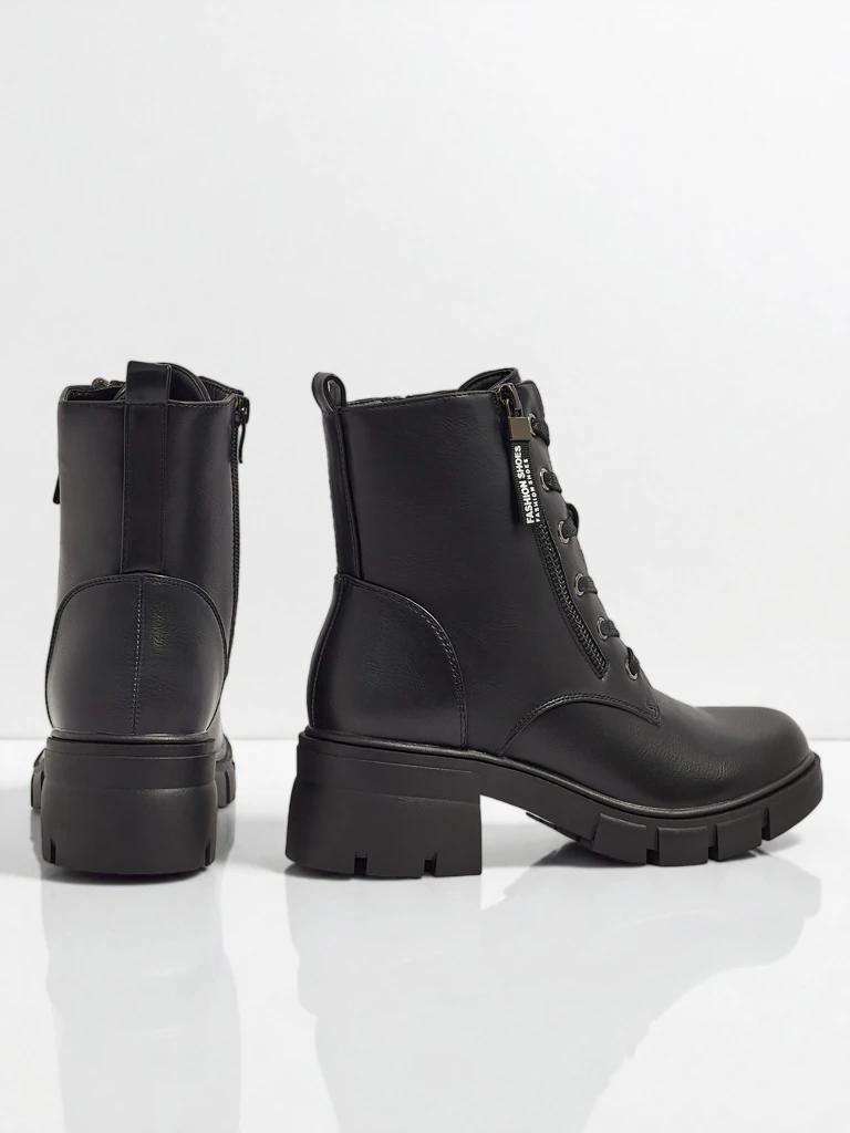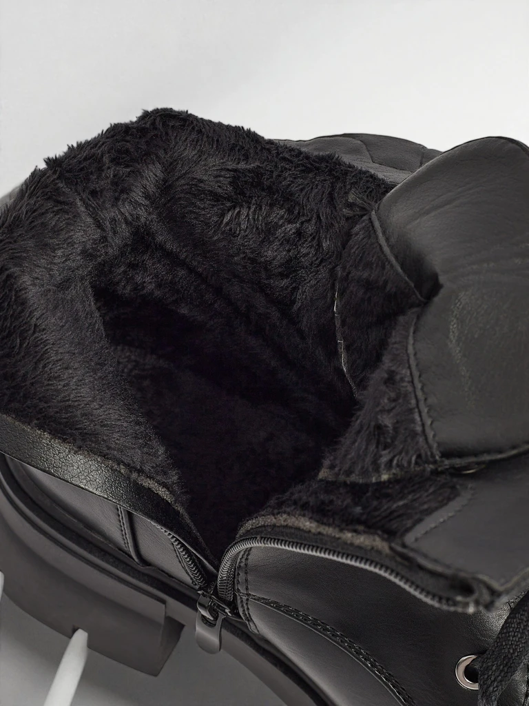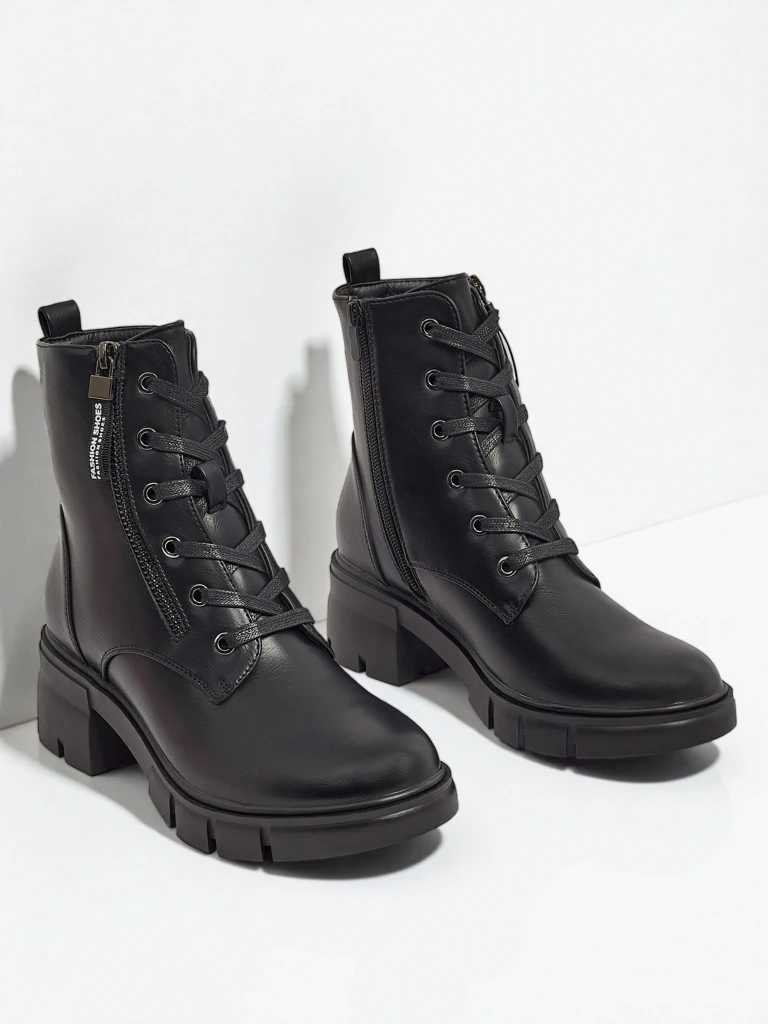 - Жіночі ботільйони з екошкіри, на блискавці, зі шнурівкою та круглим носком, додатково утеплені хутром – сучасність, зручність та стиль в одному.