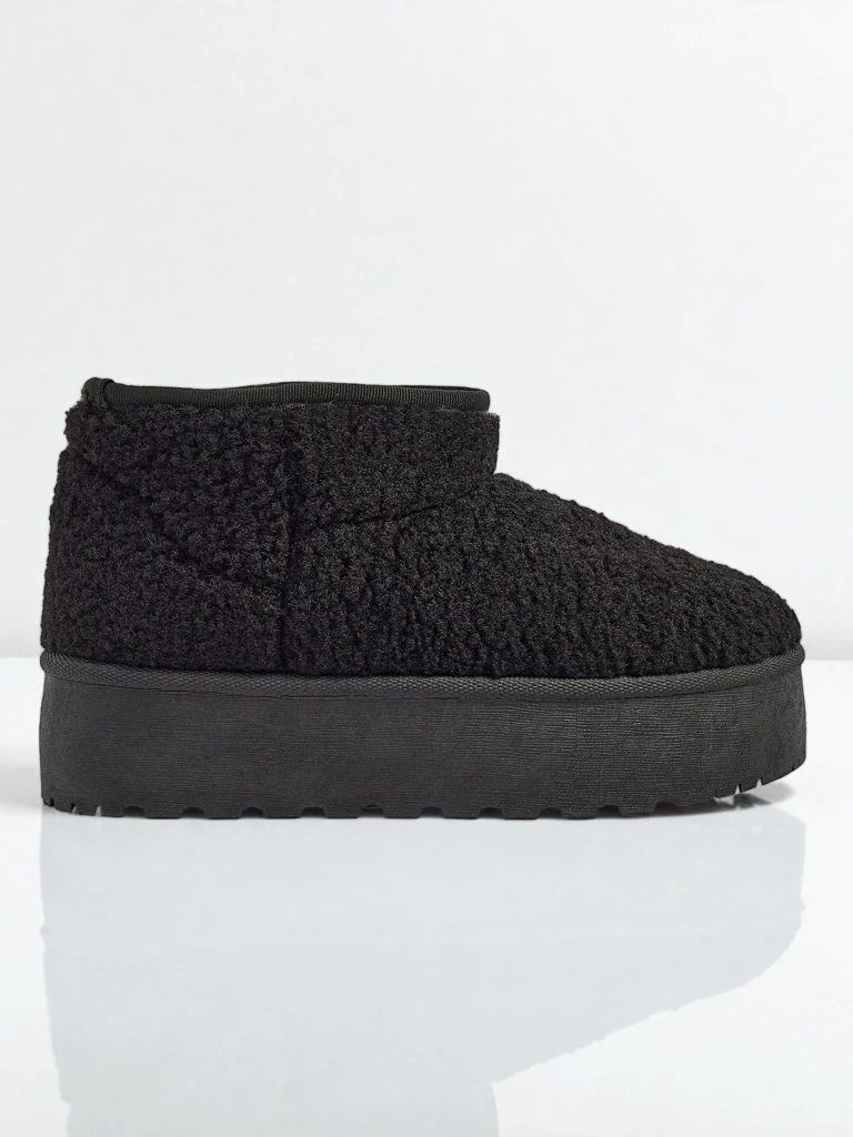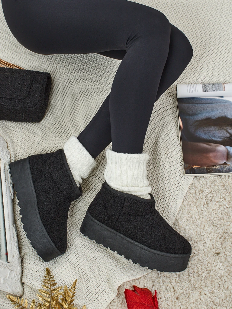 - Чудові жіночі зимові черевики-снігоходи на товстій підошві-платформі. Верх виготовлений з тканини а-ля кожушок, середина утеплена хутром. Ідеальна база на зиму!