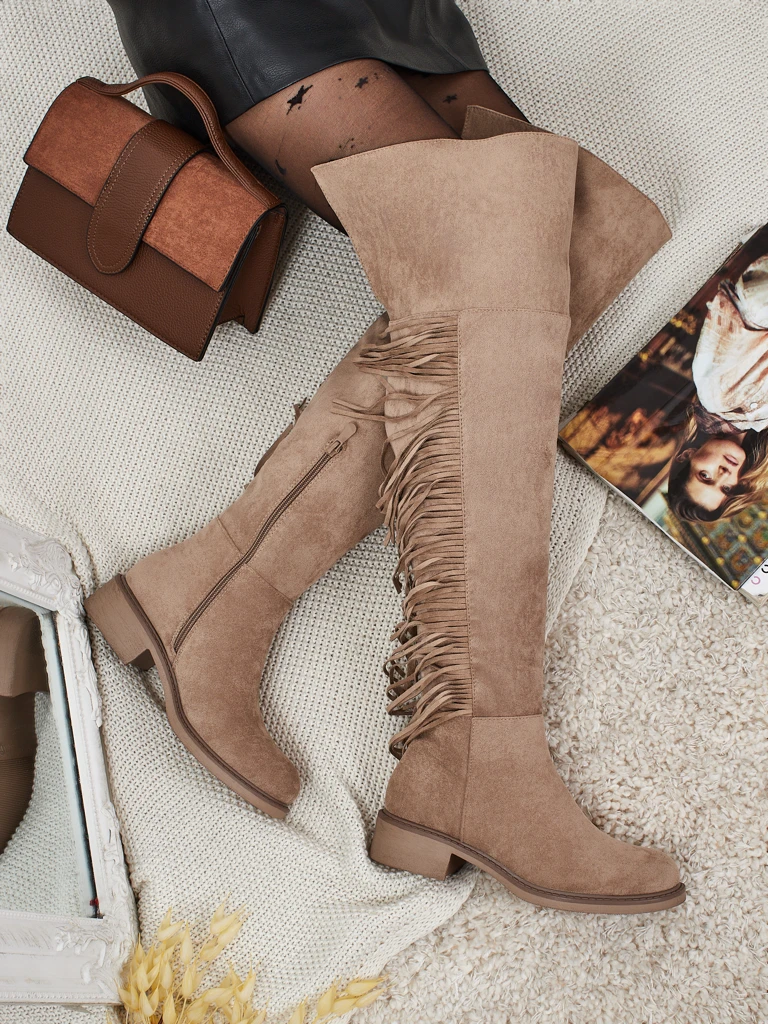 Жіночі ботфорти з еко-замші з бахромою Ostrelia