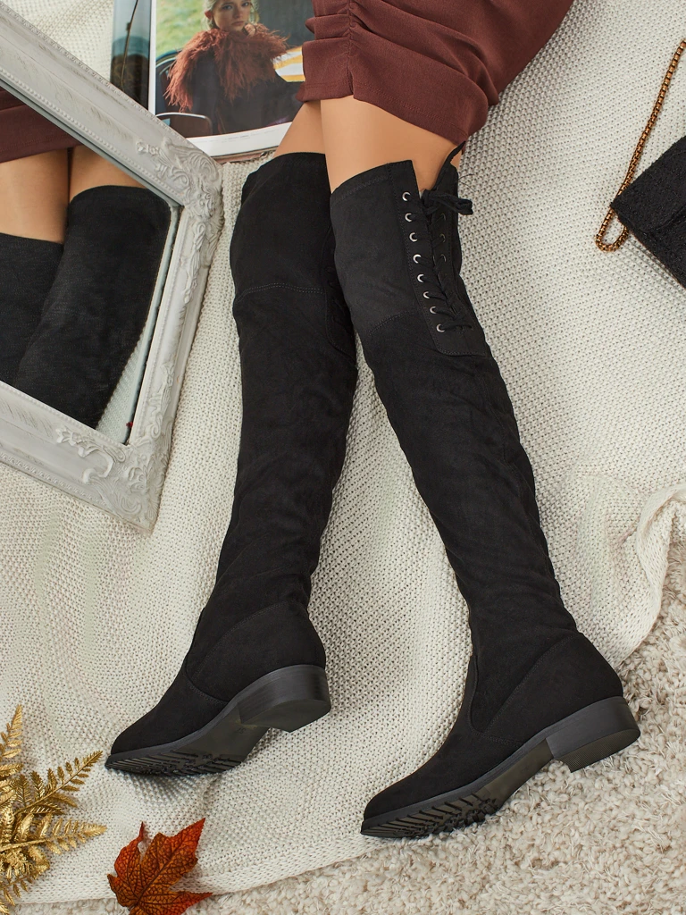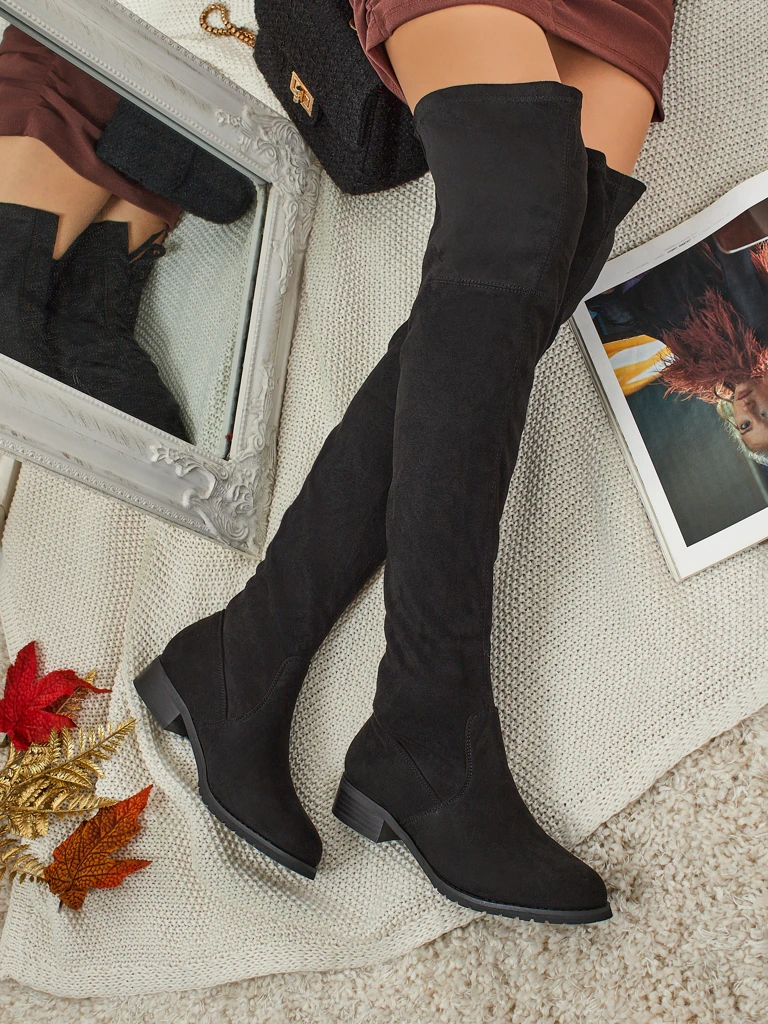 - Модні жіночі ботфорти на товстій підошві. Халява виготовлена з екозамші. Внутрішня частина з тканини. Модель забезпечує комфорт та зручність у прохолодні дні. Застібаються на блискавку до середини литки.