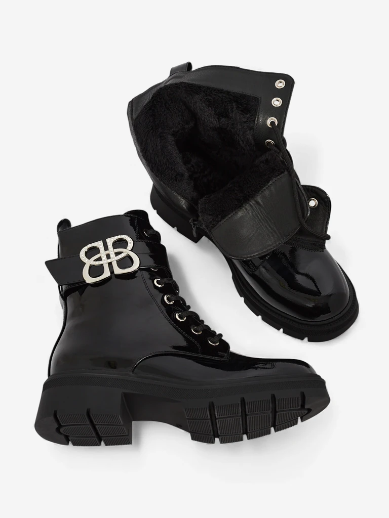 • Жіночі ботильйони-воркери - це унікальне взуття, що поєднує в собі стиль і комфорт. Виготовлені з еко-шкіри лакованої, утеплені ніжним хутром. Модель на шнурівці та застібається на блискавку. Товстіша підошва додає комфорту на кожному кроці.